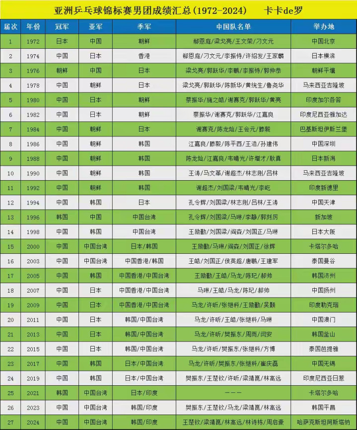 中国队自从1974年首次夺冠后,只有在1996年决赛中不敌韩国队,以及2021年没有参赛,其余中国队全部赢得最后的冠军,而今天中国队遭遇开门黑,梁靖崑与王楚钦两位主力都输球了,中国队0-2落后的不利局面,不过随着林诗栋3-2战胜篠塚大登,把中国队从悬崖边拉了回来,也赢得第四盘比赛的较量。