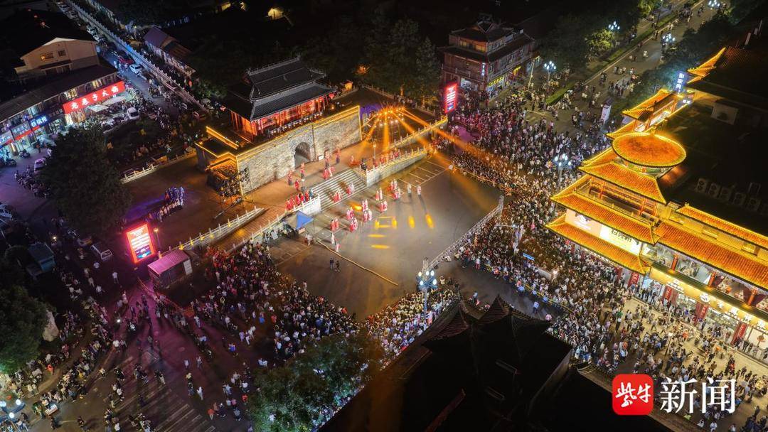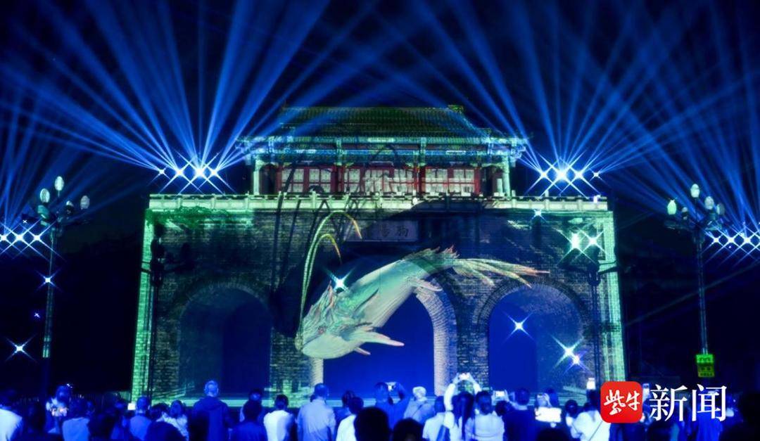 作为海州文旅的核心地标之一,海州古城在国庆首日夜晚迎来客流高峰。71名身着陕北传统服饰、头扎白毛巾的表演者,腰挎红鼓、手持鼓槌边行进边击打,安塞腰鼓的雄浑节奏响彻古城;随后,20对青年男女身着不同朝代古装婚服,从谢家洋房踏歌而出,展现传统婚嫁文化的典雅;在《我和我的祖国》旋律中,300余名参与者手持小国旗合唱,用歌声为祖国庆生。当晚,海州古城“朐秀”系列活动震撼首演,《光影千年・山海华章》光影秀点亮古老城墙,传统与现代元素在此交融,吸引众多游客驻足观赏。