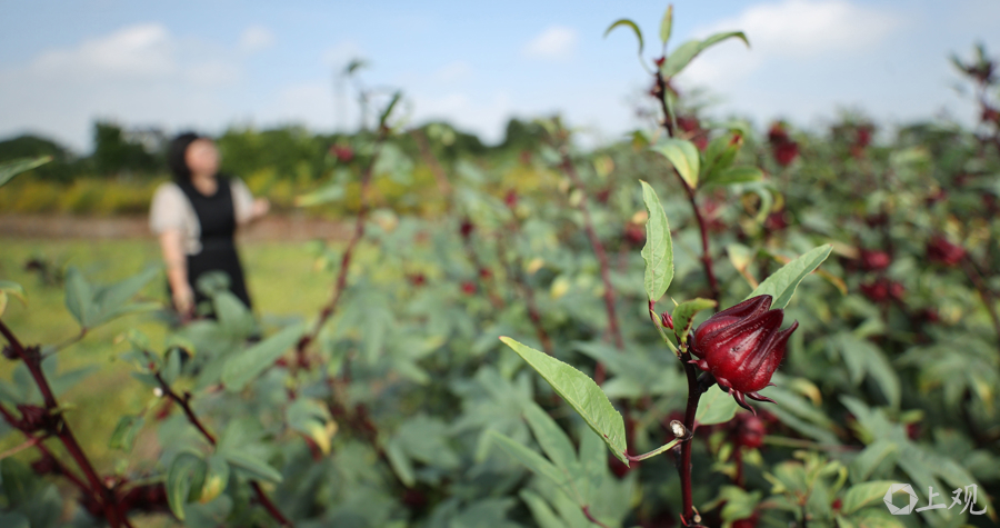 近日,上海奉贤区西渡街道北新村的洛神花迎来丰收季。